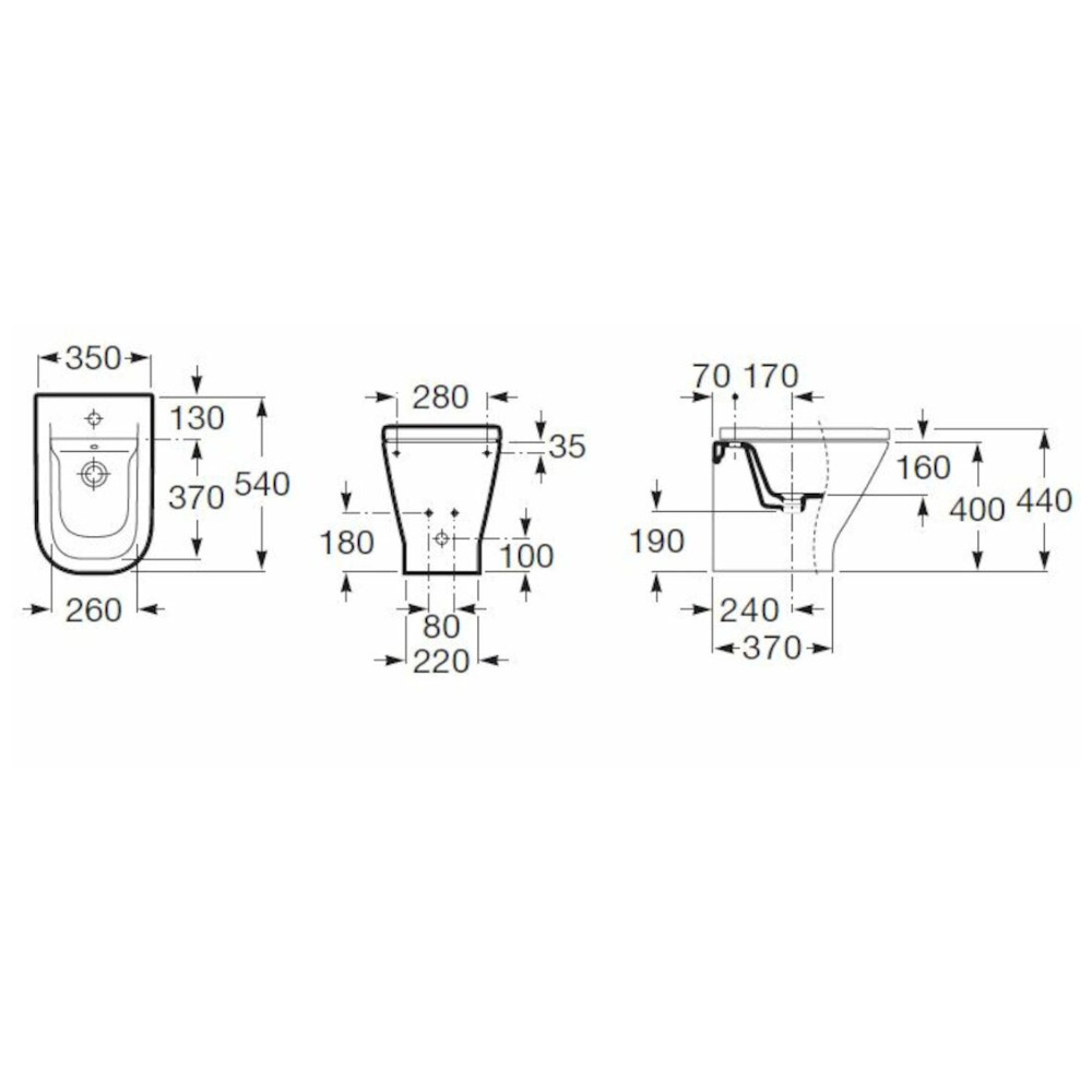 Caractéristiques du Bidet à poser Roca The Gap, 35x44cm, fixations incluses, blanc (7.3574.7.700.0)
