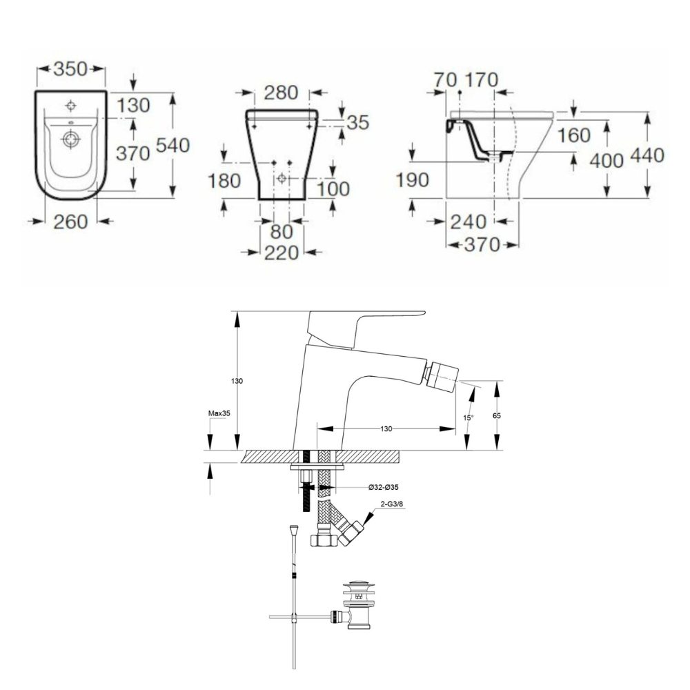 Set The Gap Bidet à poser blanc, 35x44cm + Mitigeur bidet avec bec chromé et tirette