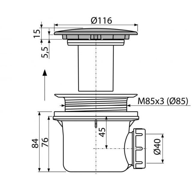 - Diamètre d'évacuation: 90