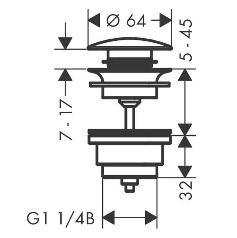 Caractéristiques de la garniture de vidage Push-Open pour mitigeur de lavabo et de bidet noir mat Hansgrohe (50100670) :