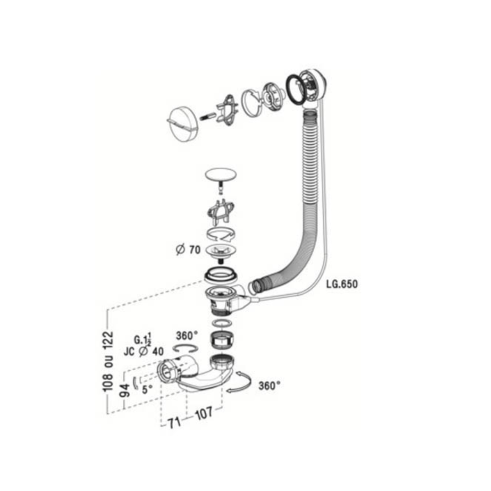 Avec le siphon Easybain, vous n'aurez plus de problème de positionnement du joint plat sous la baignoire et sa rotule inclinable et orientable à 360° vous facilitera le raccordement à l'évacuation.