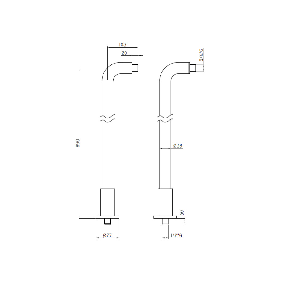 Siko Raccordement au sol pour robinet de baignoire, 2 pièces, Chrome (NOHYOPTIMA)