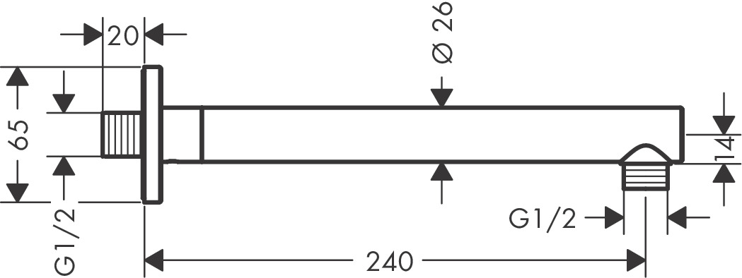 Hansgrohe Vernis Shape Bras de douche M 1/2" 240 mm, Chrome (26405000_hansgrohe)