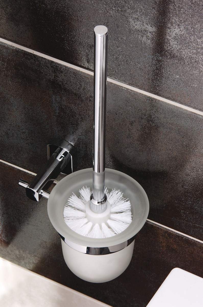 Optima Cube Way Brosse de toilette murale en verre et métal, Chrome (SPI37)