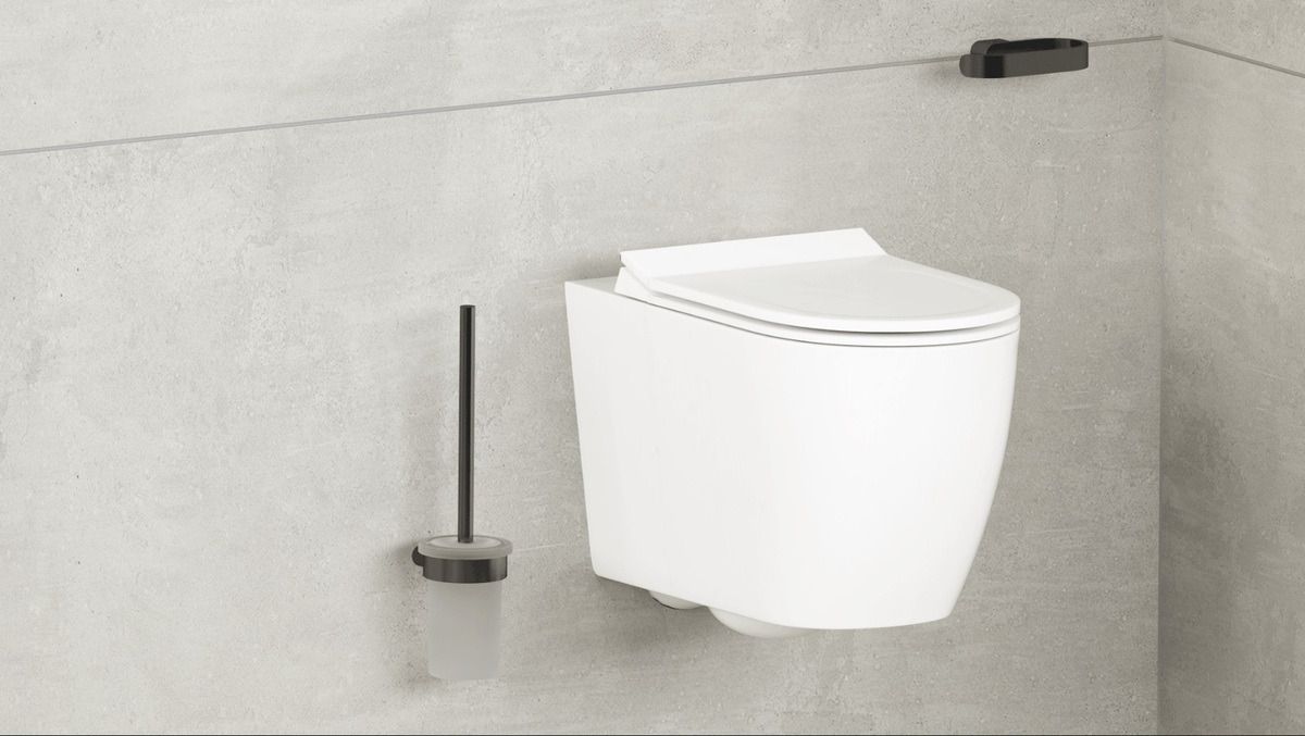 Transformez votre salle de bains en un espace d'élégance avec la brosse WC murale Gun métal de Swiss Aqua Technologies.