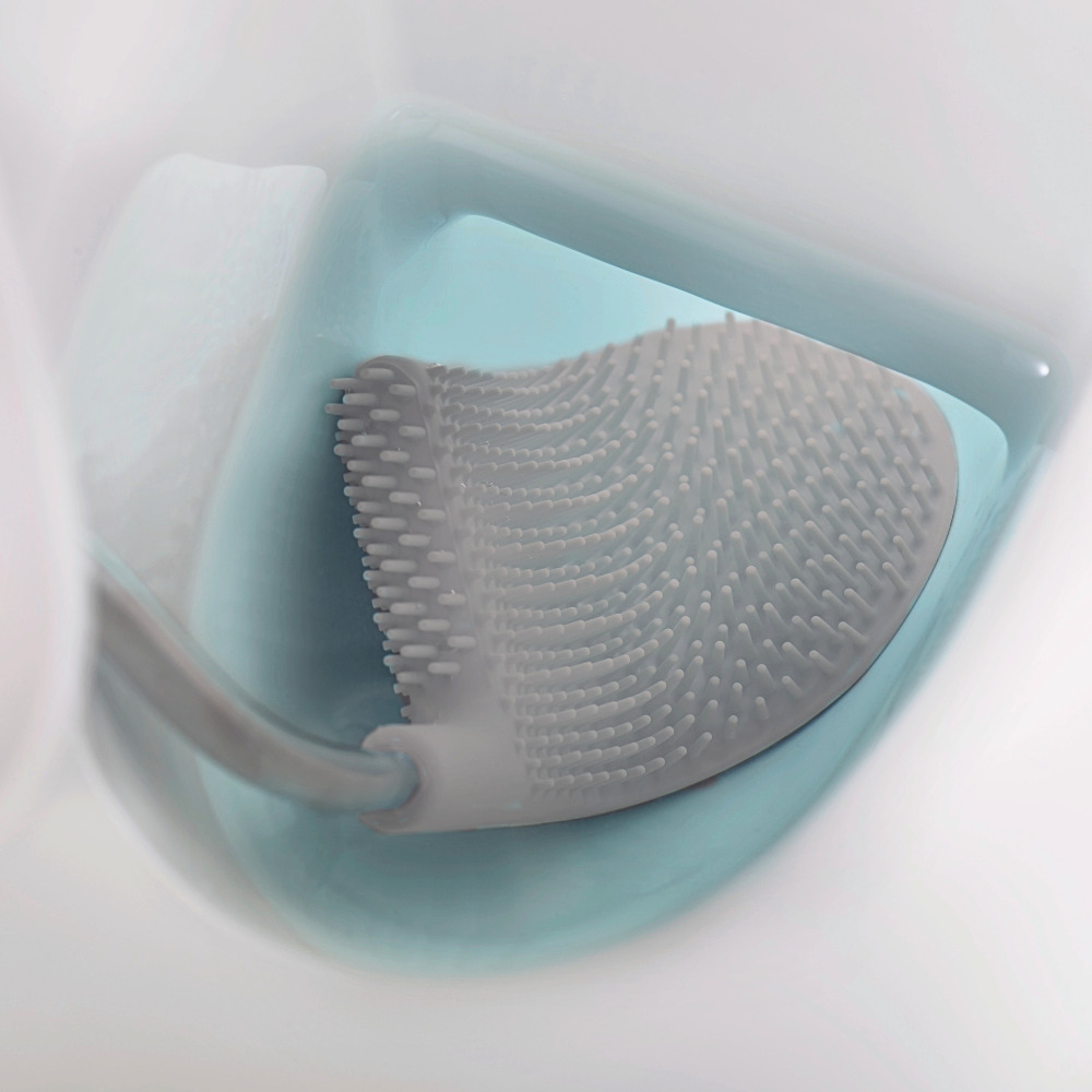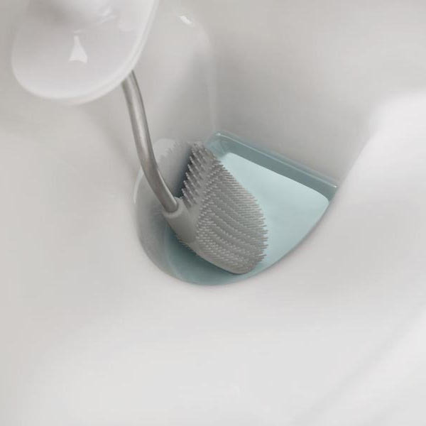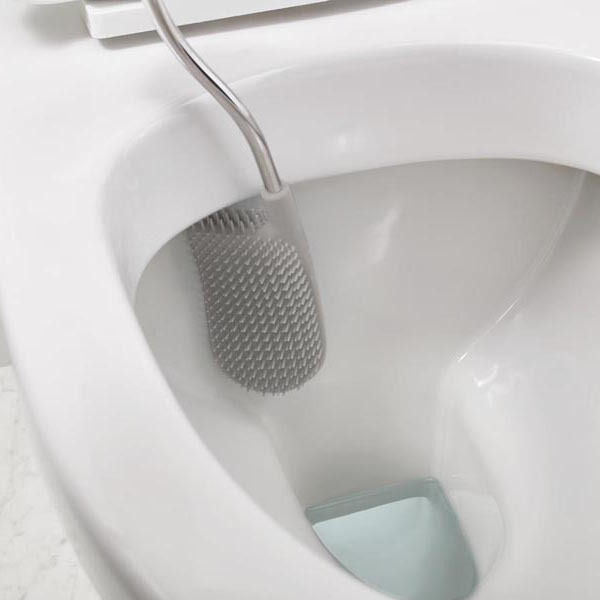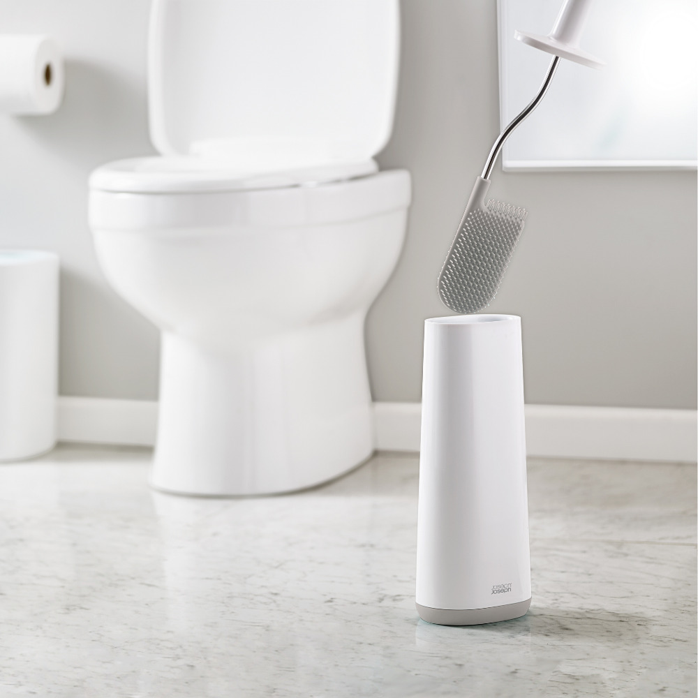 Caractéristiques de la brosse de toilette anti-goutte Flex™ Joseph Joseph avec son porte-brosse compacte et stable, Gris clair (70515)