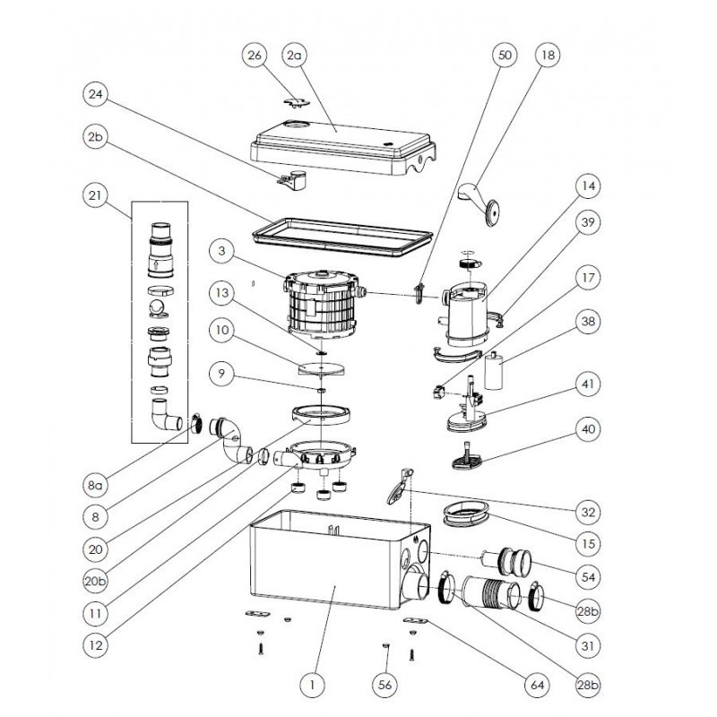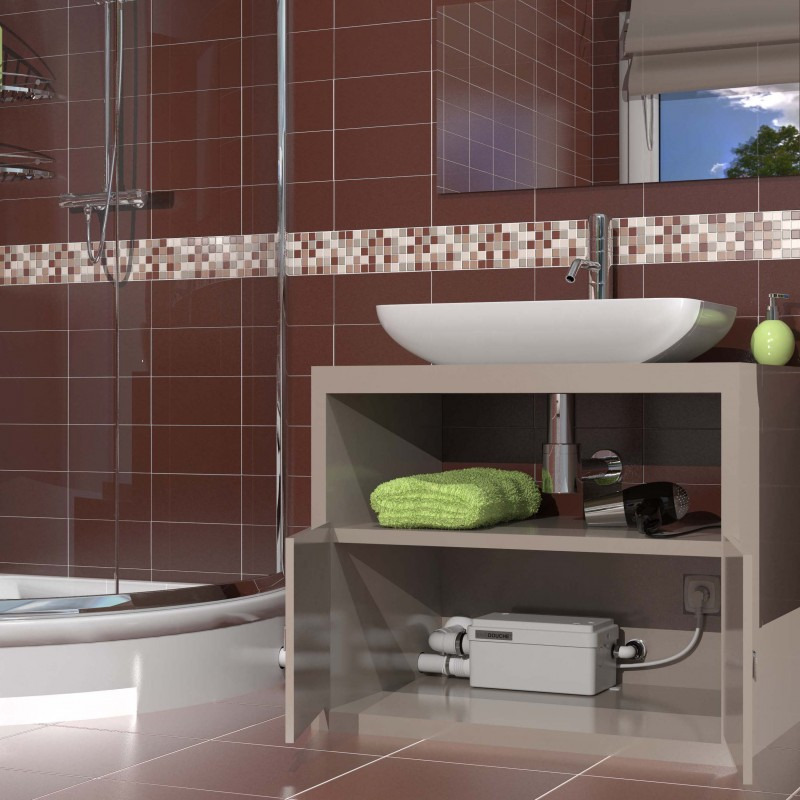 Grâce à ses dimensions compactes et à son enclenchement bas, la pompe sanitaire de douche Sanidouche+ peut s'intégrer sous un receveur de douche ou dans un meuble de salle de bains. Avec son faible niveau sonore (46 dB(A)), elle se fera discrète une fois installée.