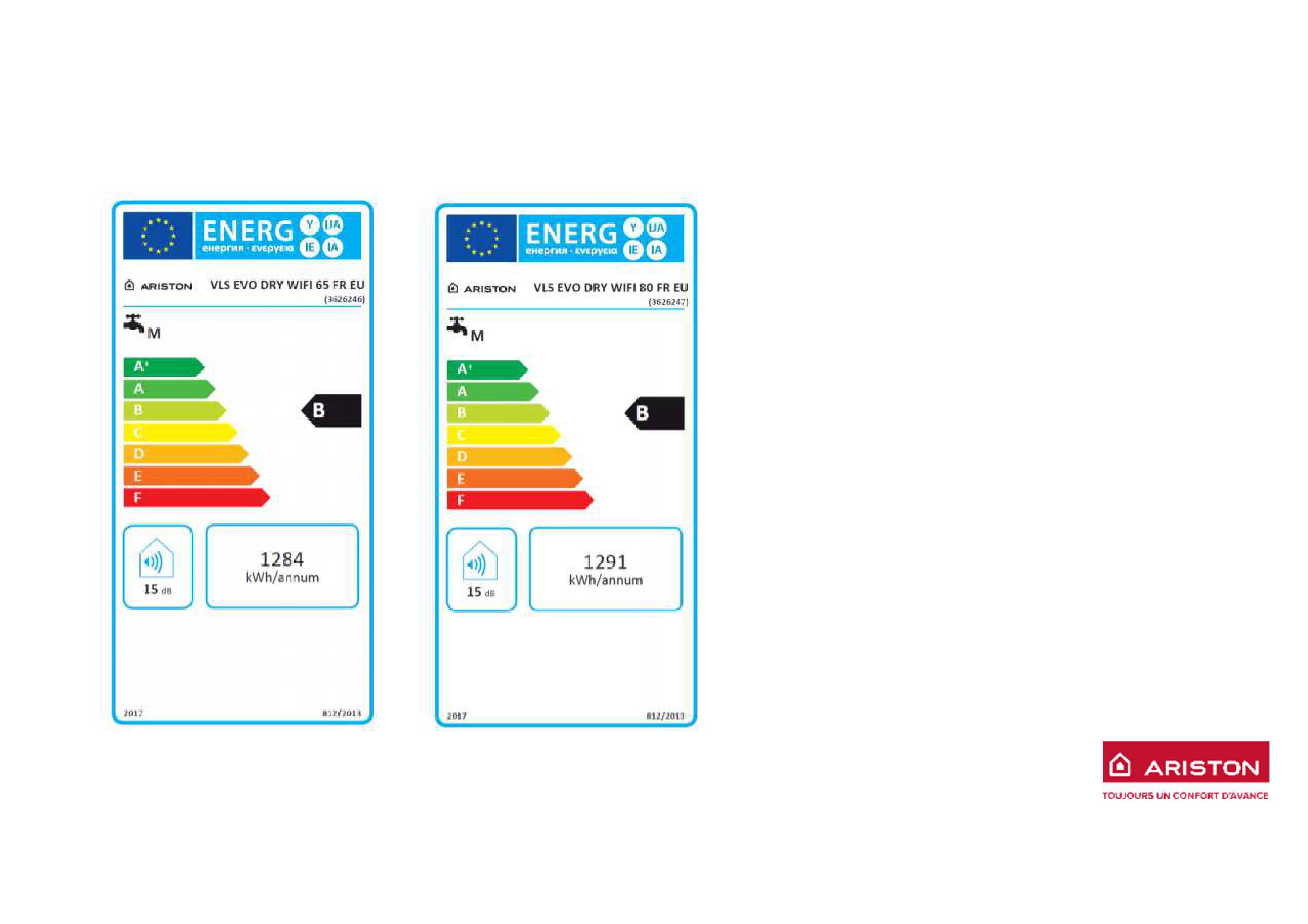 Ariston VELIS EVO Chauffe-eau électrique plat 80 L, 1500 W, Classe énergétique B, Blanc (3626155) :