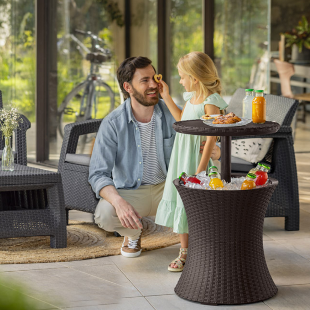 Keter Cool bar rotin Glacière, avec table rétractable, 57x 50 x 50 cm 30L, Brun (230902)