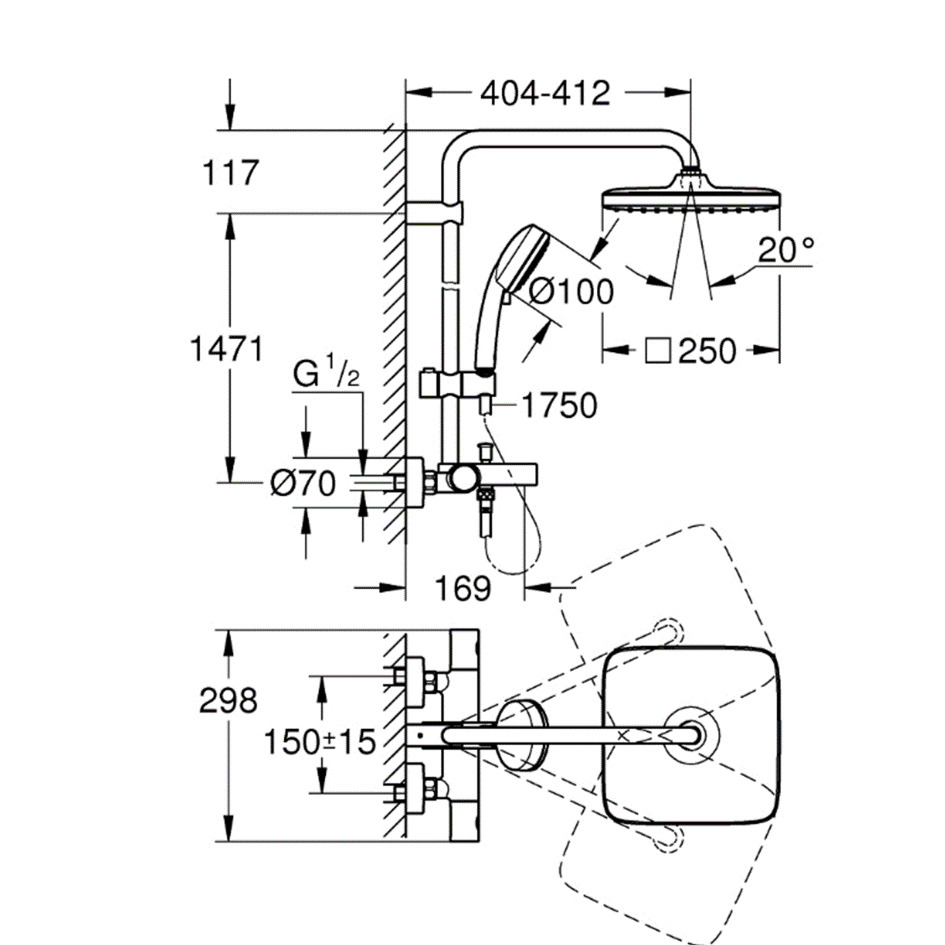 Grohe TEMPESTA COSMOPOLITAN SYSTEM 250 Colonne bain/ douche avec Mitigeur Thermostatique, Douchette 2 Jets, Chrome/blanc (26691000)