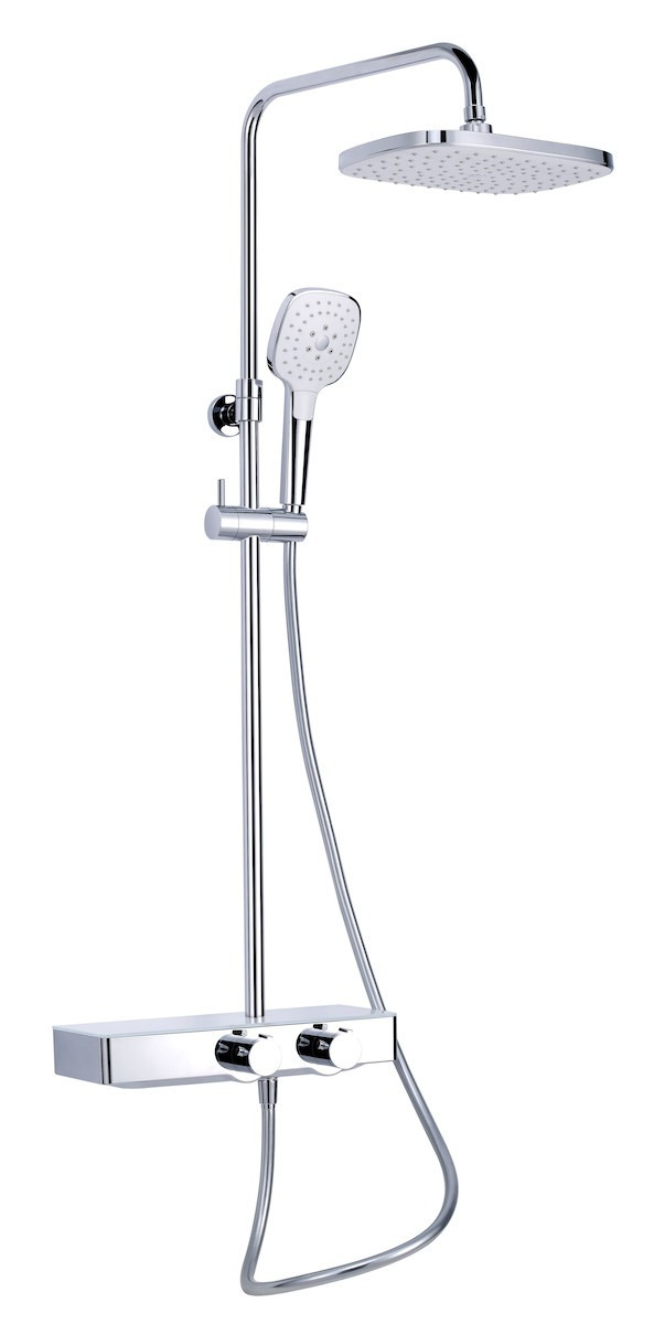 Laissez vous séduire par le design et la simplicité d'installation de la Colonne de douche avec mitigeur thermostatique et tête de douche XXL 287mm, blanc / chrome.