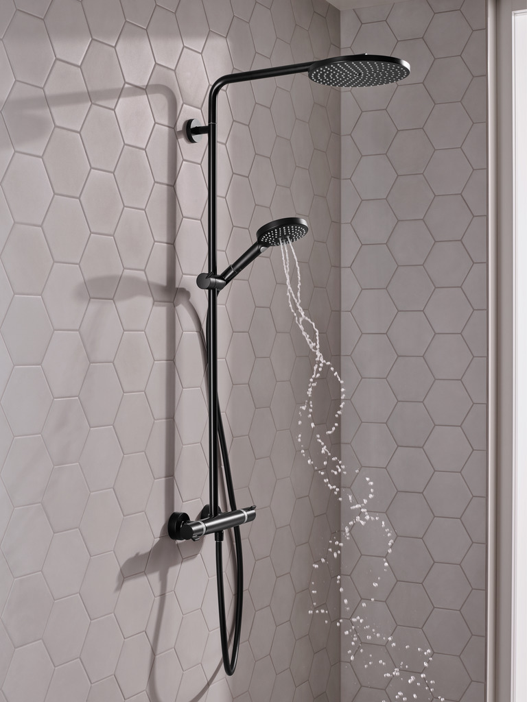 Hansgrohe Raindance Select S Colonne de douche 240 1jet PowderRain avec mitigeur thermostatique noir mat (27633670)