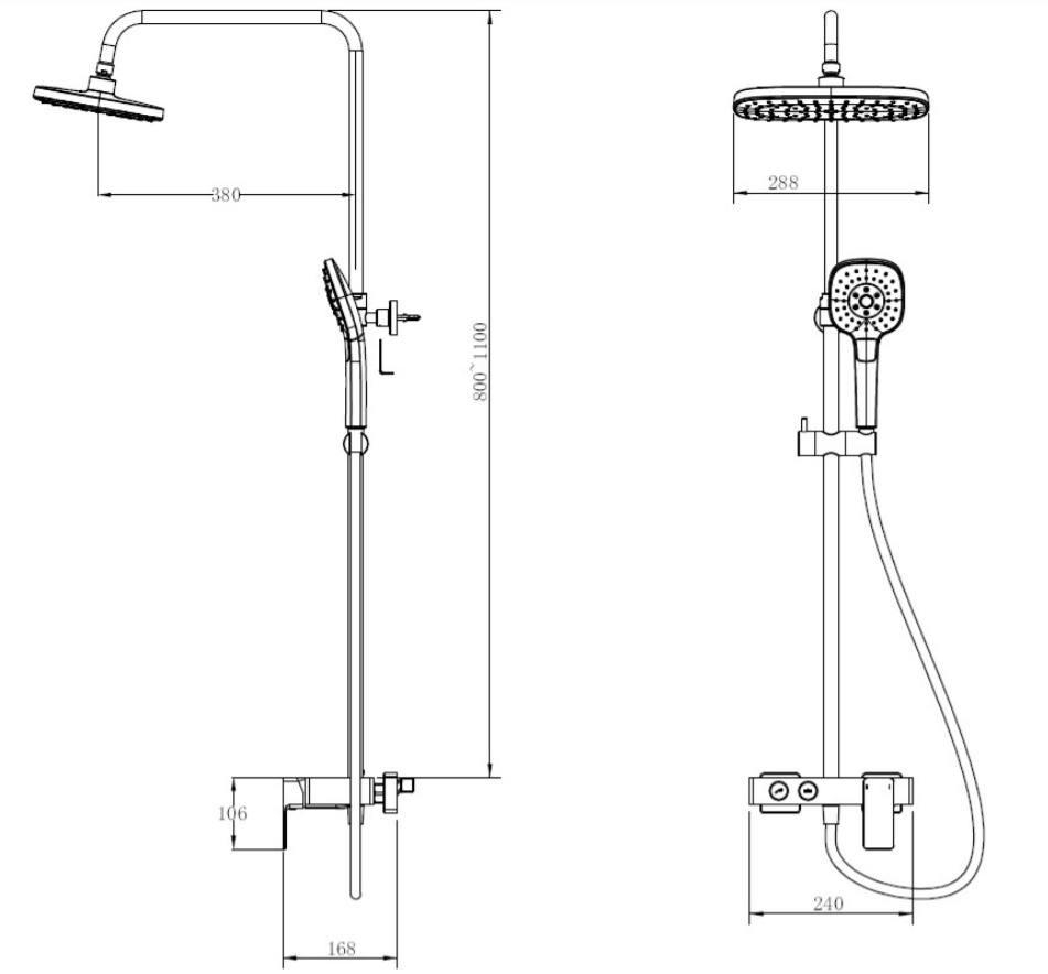- Hauteur de la colonne de douche réglable de 80 à 110 cm