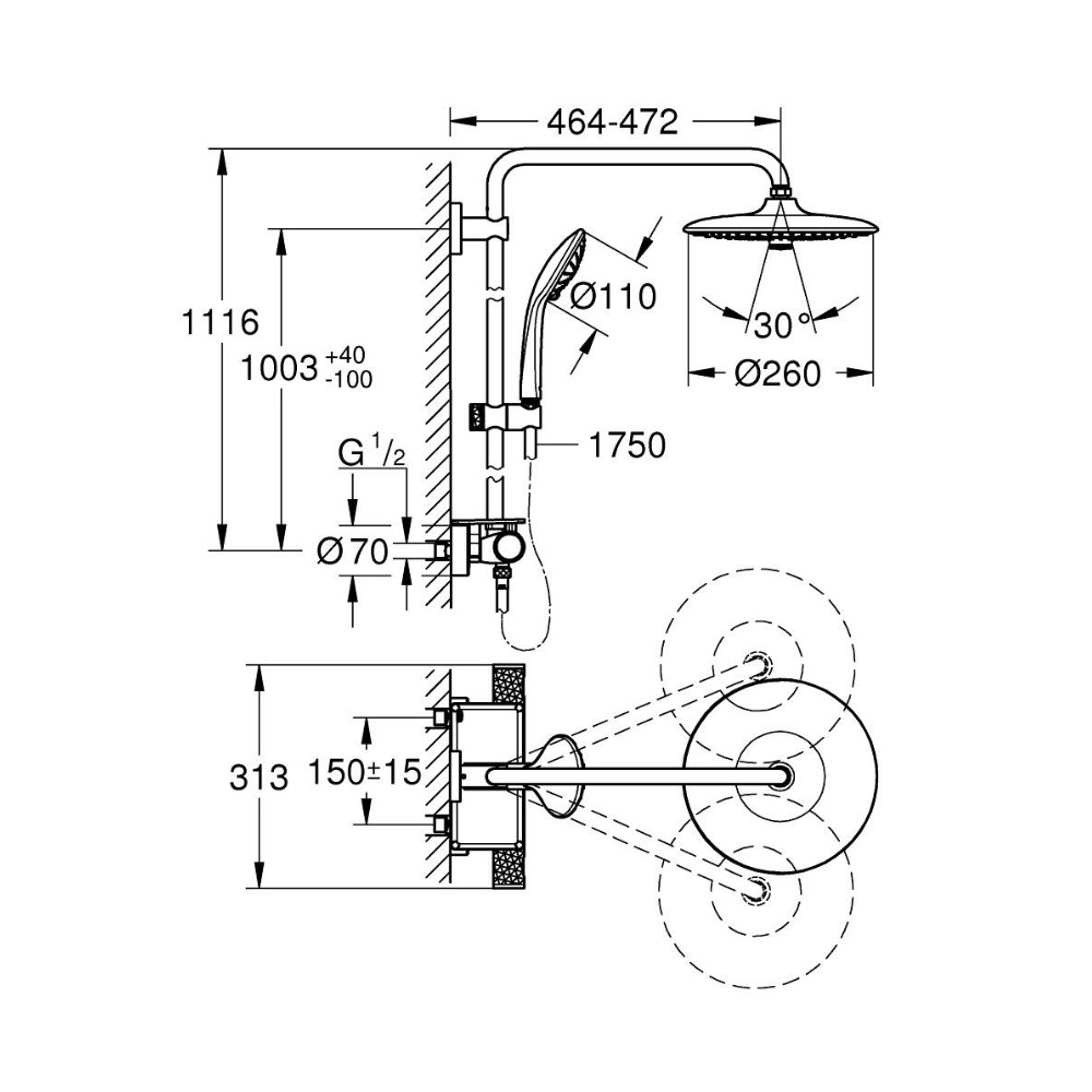 - Diamètre douche de tête (mm): 260