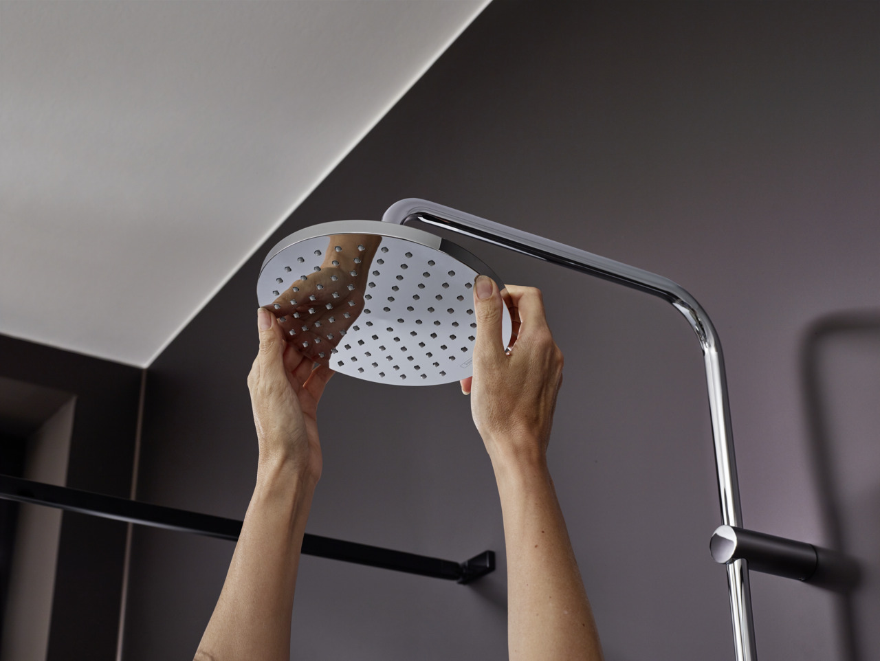 Caractéristiques de la Colonne de douche 200 1jet EcoSmart 9 l/min avec mitigeur thermostatique, Chrome, Hansgrohe Vernis Blend (26089000) :