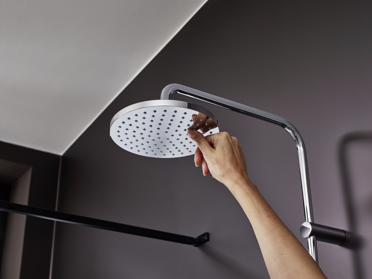 - Support de douchette réglable en hauteur grâce au bouton situé sur le côté externe du curseur
