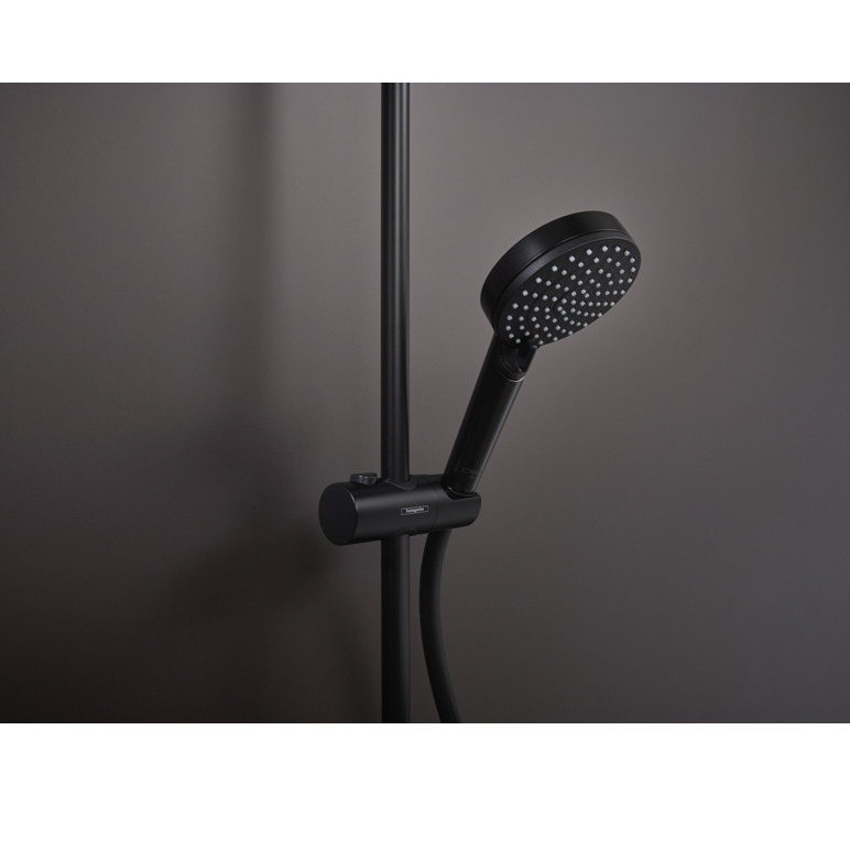 Caractéristiques de la Colonne de douche 230 1jet EcoSmart 9l/min avec mitigeur thermostatique, Noir mat, Hansgrohe Vernis Shape (26097670) :
