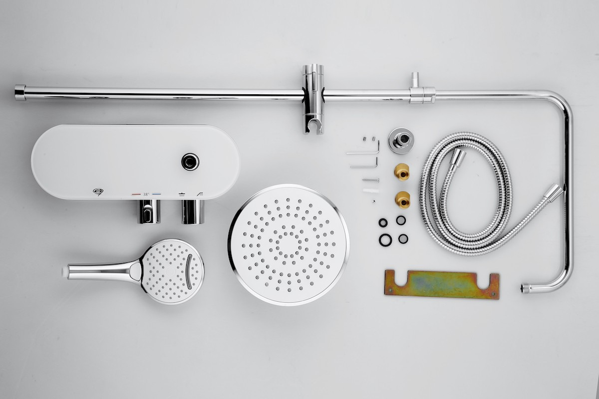 Le mitigeur thermostatique dispose d'une sécurité enfant à 38°C contre les brûlures. La cartouche thermostatique de la marque mondialement connue Vernet (France), permet de régler facilement la température et de la maintenir pendant la douche.