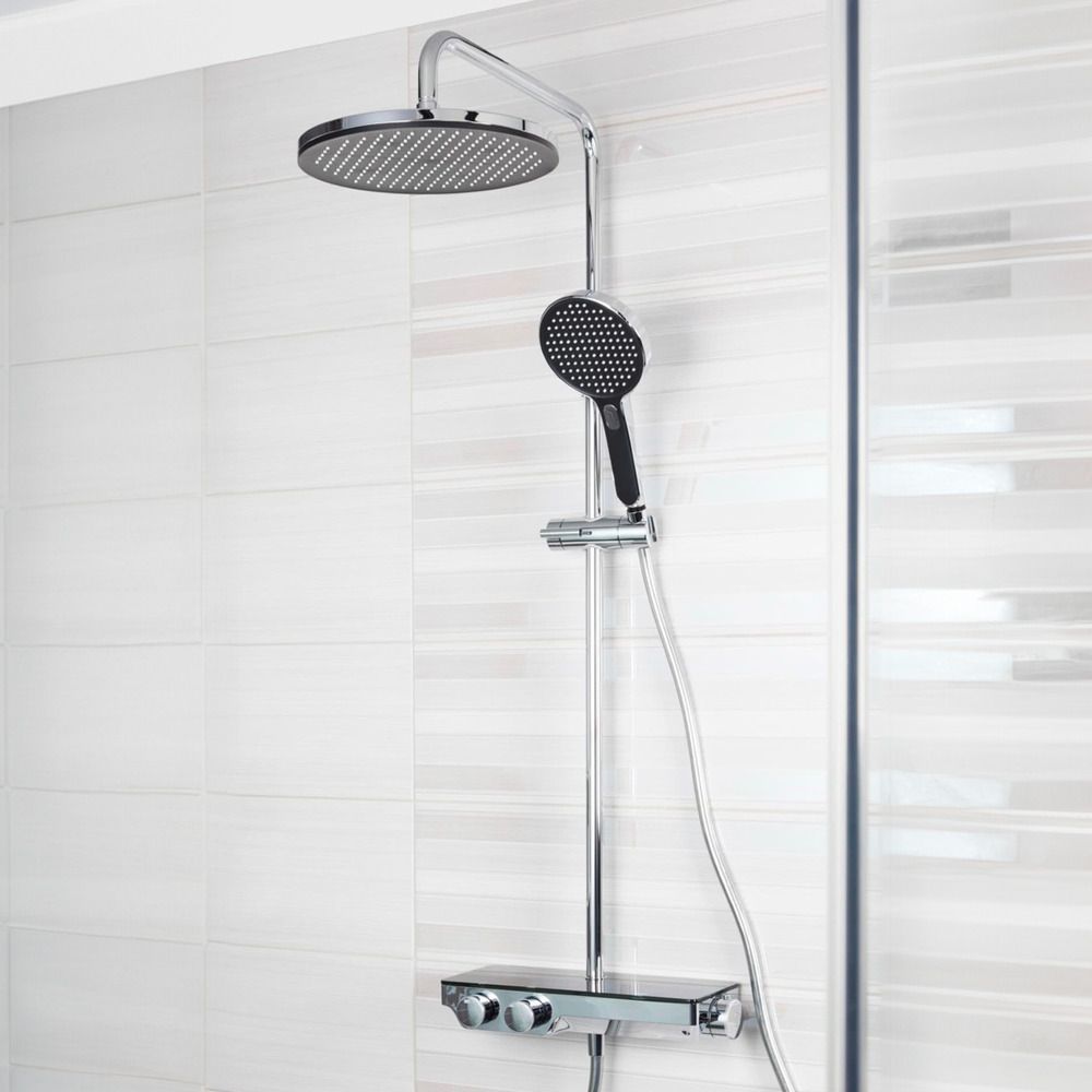 Swiss Aqua Technologies Colonne de douche avec douchette 3 jets, Mitigeur thermostatique, Barre réglable en hauteur, Noir/Chrome