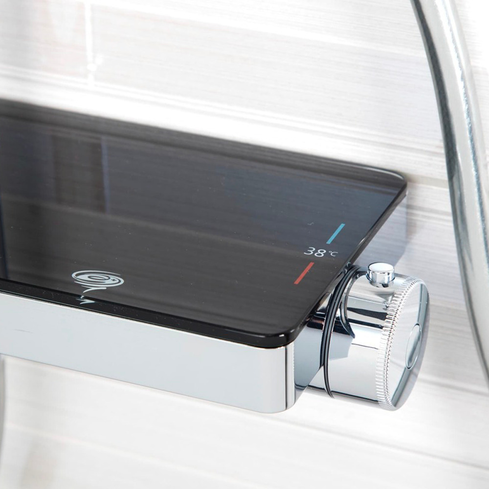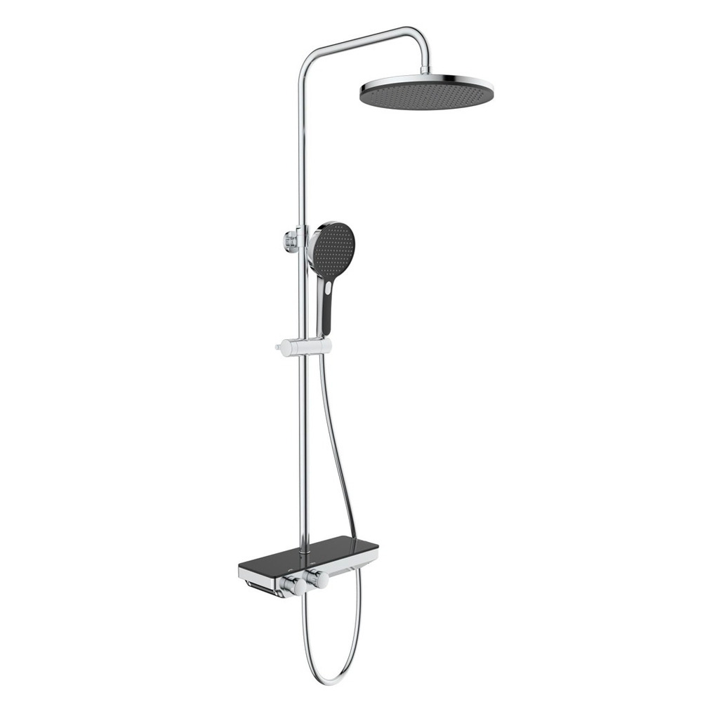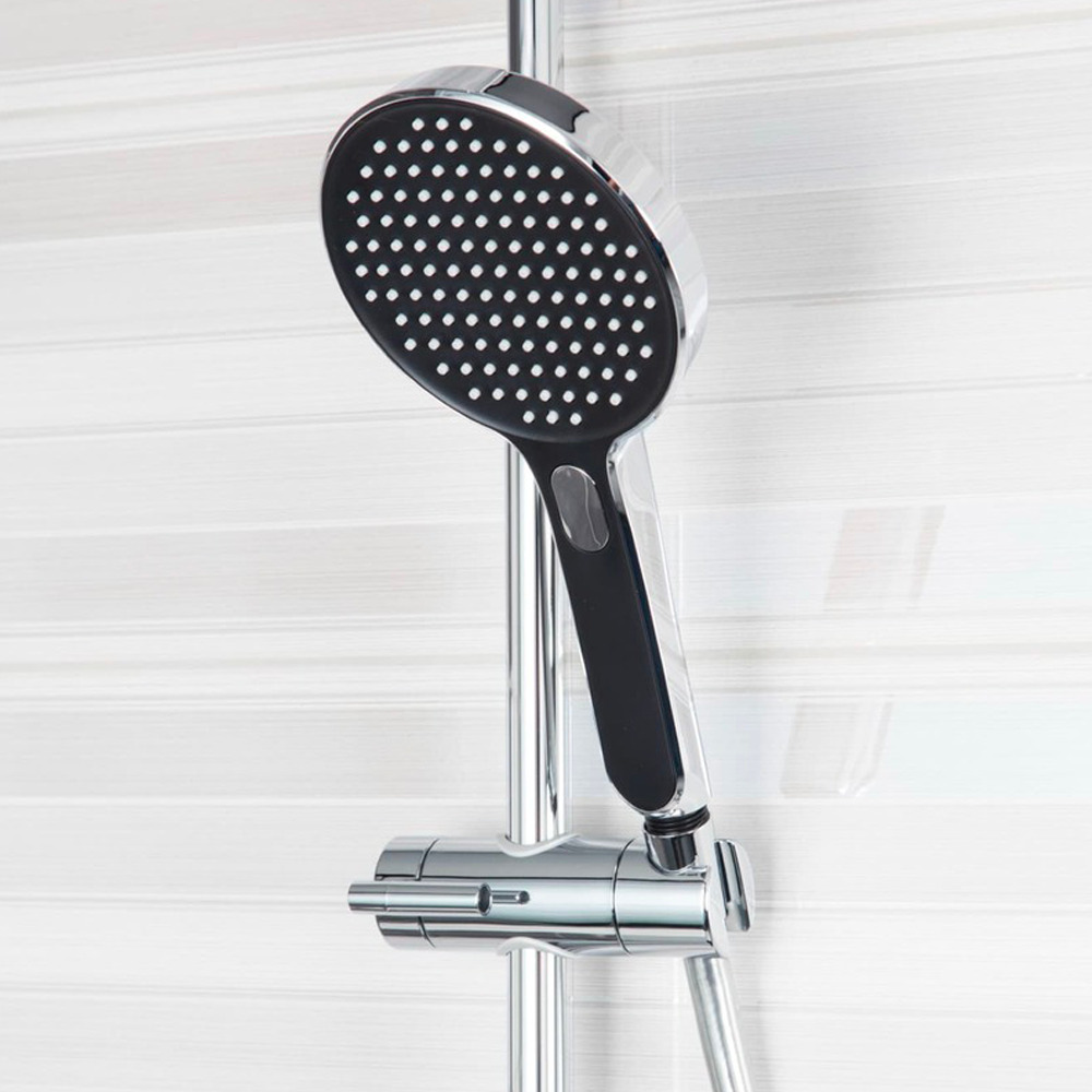 Caractéristiques de la Colonne de douche avec douchette 3 jets, Mitigeur thermostatique, Barre réglable en hauteur, Noir/Chrome (SATSSTPBCHC) :