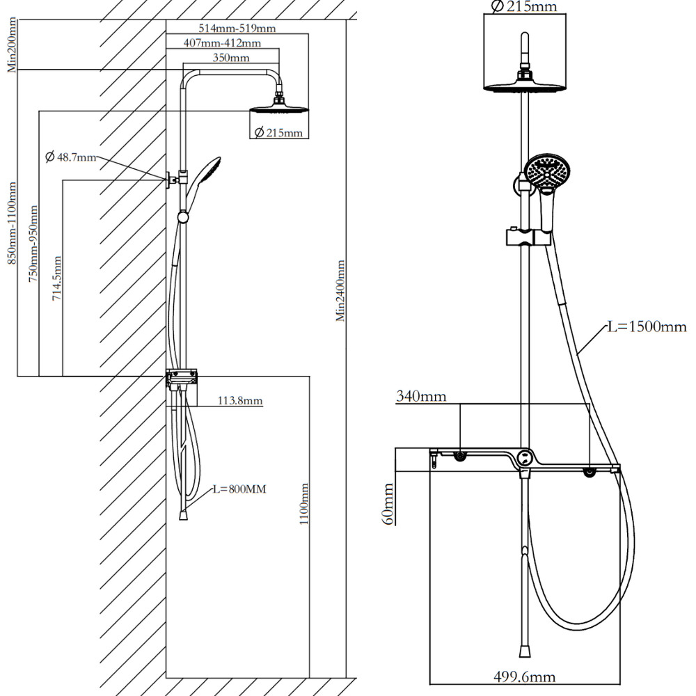- Diamètre douche de tête (mm):215