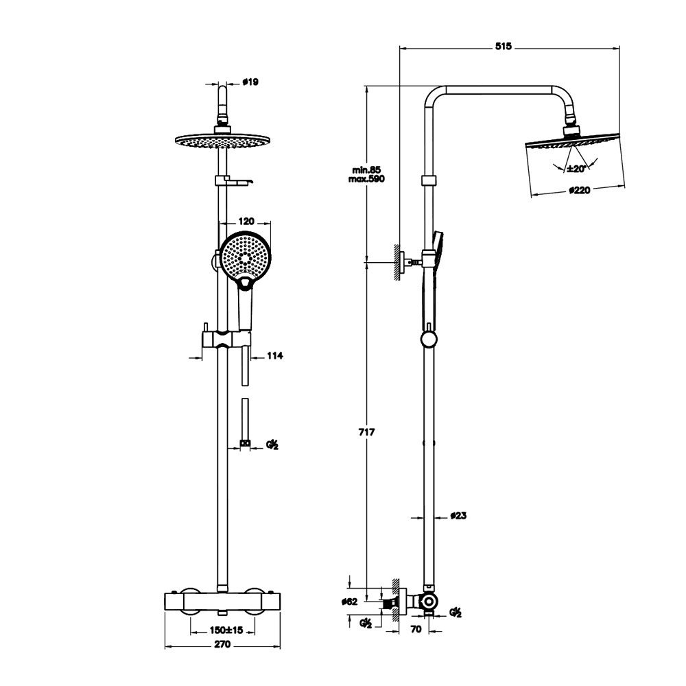 Vitra AQUAHEAT JOY Colonne de douche thermostatique, tête de douche XXL 220 mm + Douchette 3 jets, Chrome (A47200EXP)