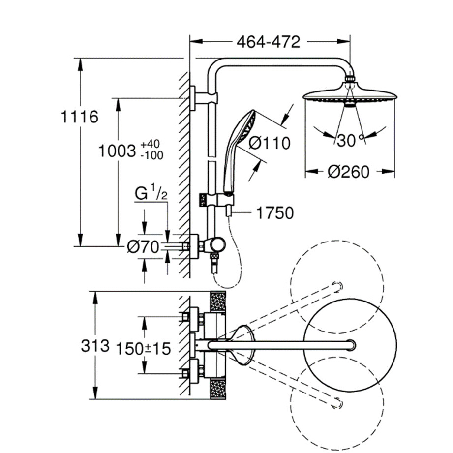 Caracté ristiques de la EUPHORIA SYSTEM 260 colonne de douche thermostatique XL, Chrome, (27296003):