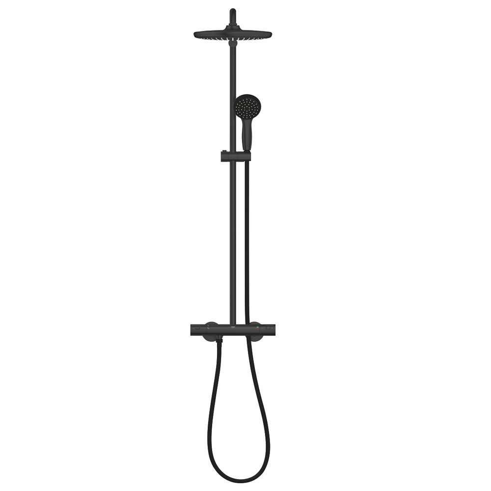 Grohe Vitalio start system 250 colonne de douche thermostatique, tête de douche XXL 250 mm + Douchette 2 jets noir mat (266772430):