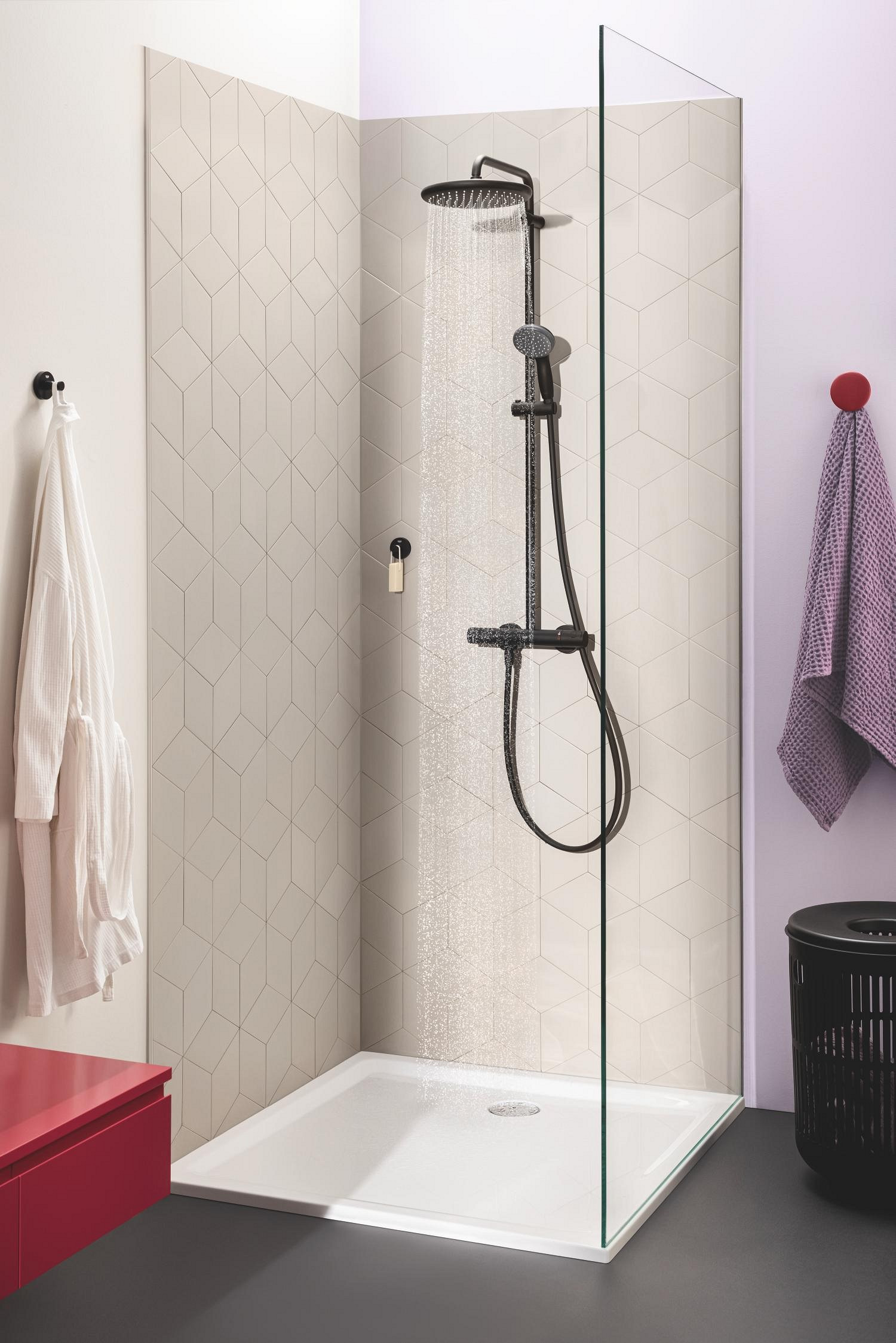 - Grohe Vitalio start system 250 colonne de douche thermostatique, tête de douche XXL 250 mm + Douchette 2 jets noir mat (266772430)