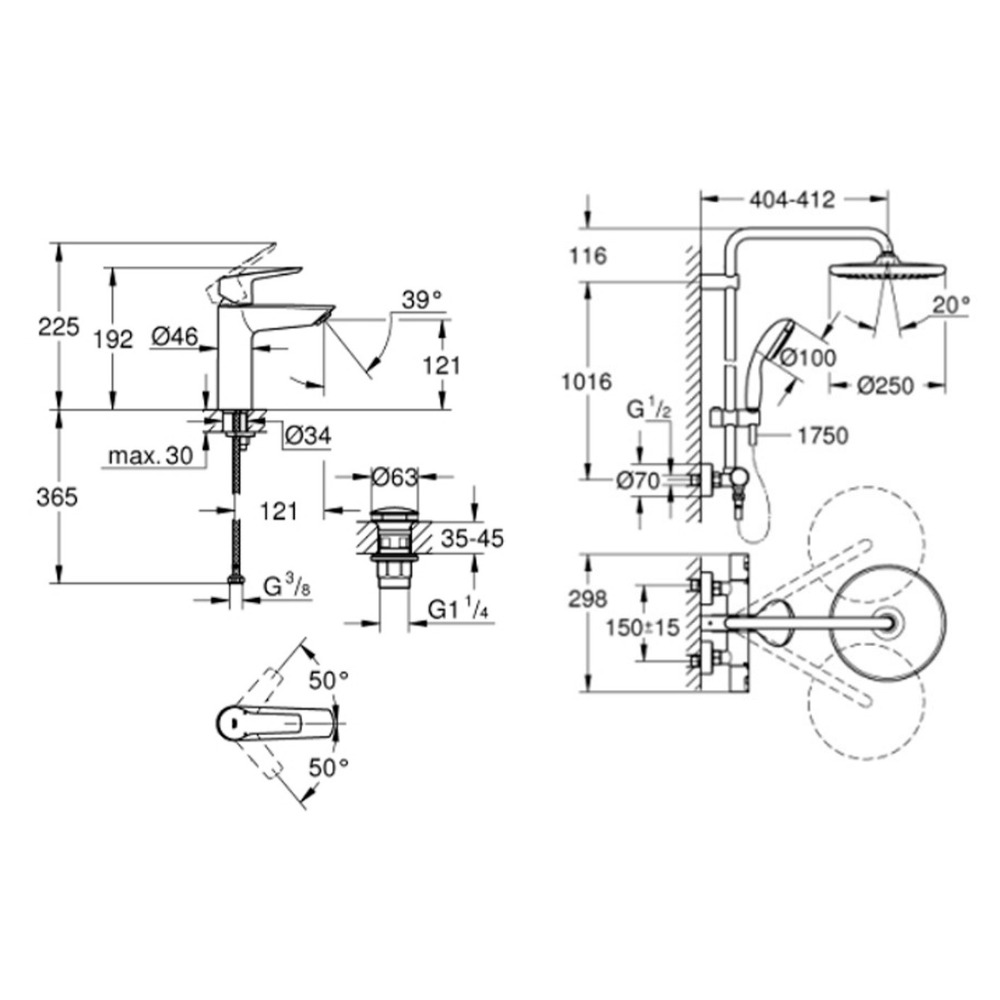 - Taille de la douche de tête:250 mm