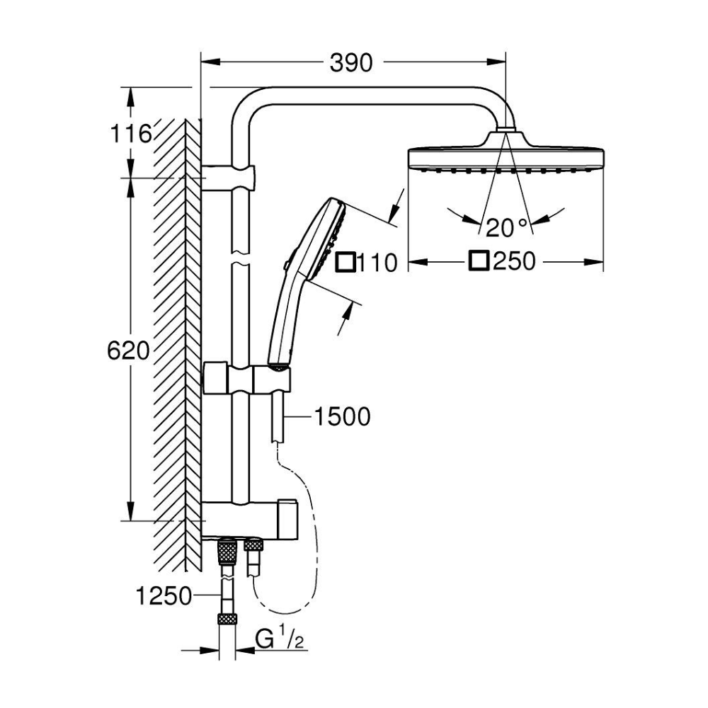 - Bras de douche (cm):39