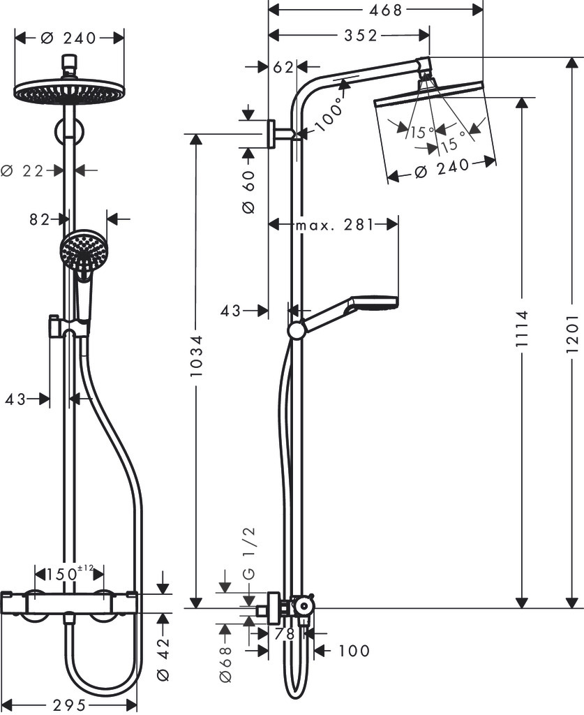 - Longueur du bras de douche:350 mm