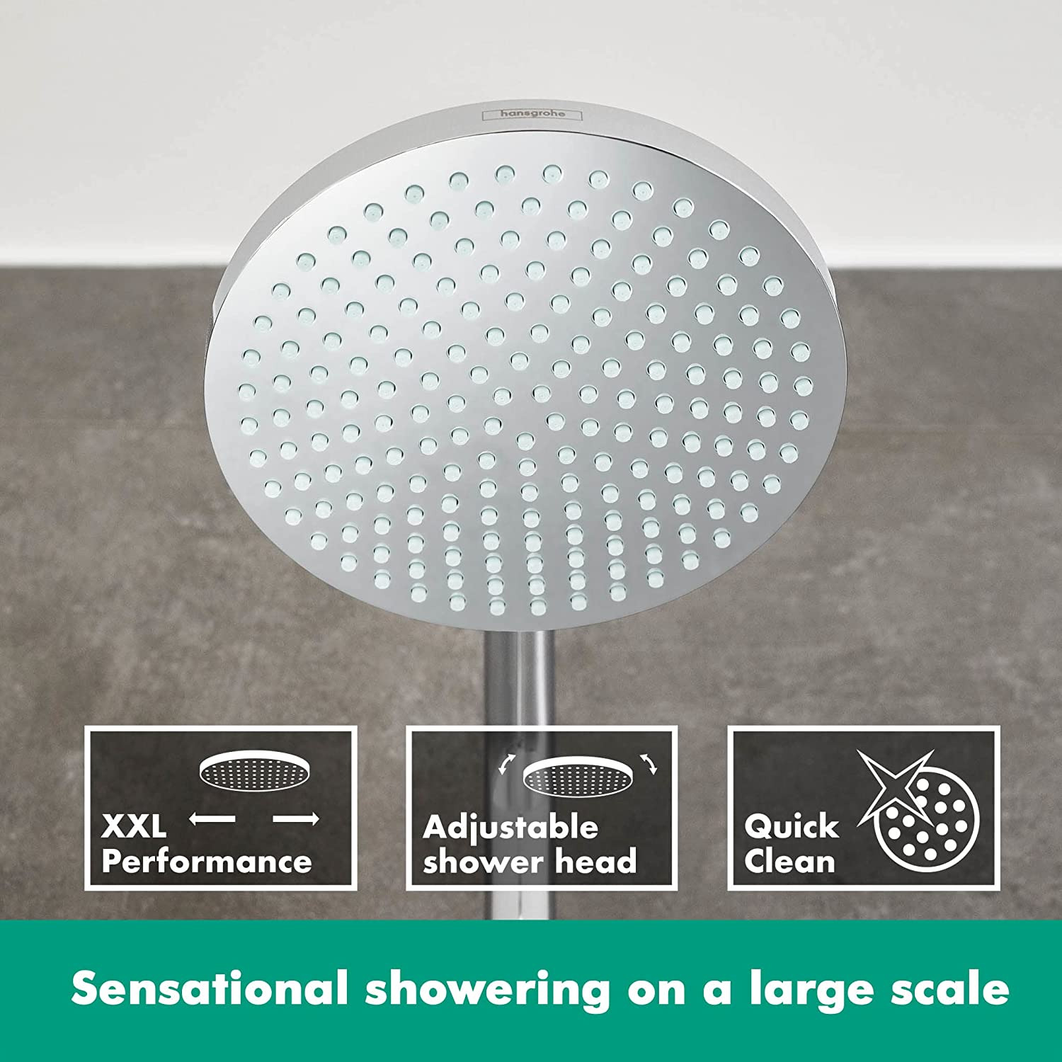 Cette colonne de douche est équipée d'une pomme de douche ronde avec un diamètre de 240 mm pour vous offrir une expérience de douche luxueuse. Le jet unique de la pomme de douche est puissant et agréable, tandis que la technologie Ecosmart de Hansgrohe garantit une consommation d'eau réduite de 60%.