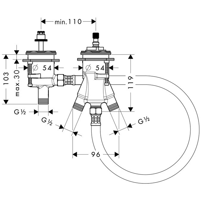 Axor Corps d'encastrement pour thermostatique 2 trous pour montage sur bord de baignoire (15486180)