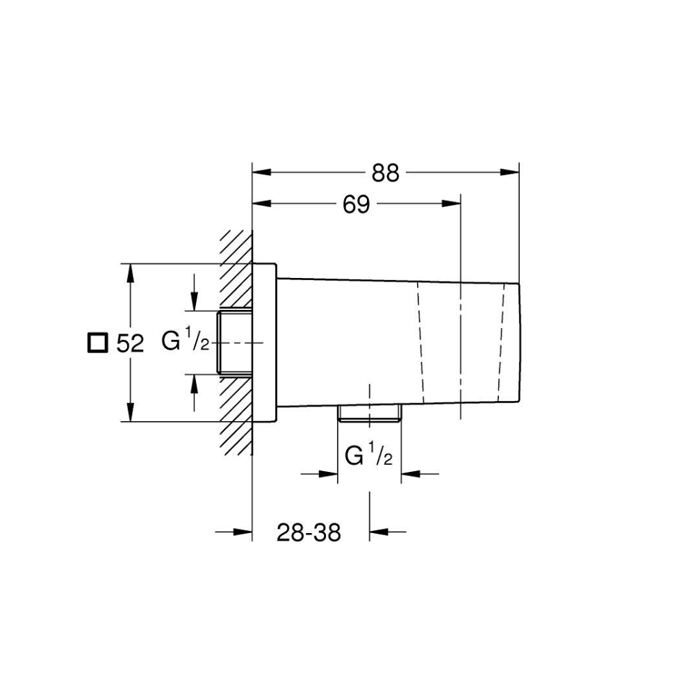 Caractéristiques du coude à encastrer 1/2″, Grohe Euphoria Cube, inox (G26370DC0) :