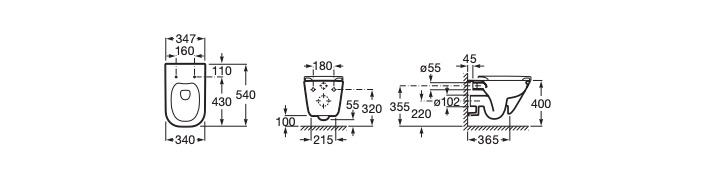 Caractéristiques du WC suspendue en céramique sans bride Rimless ROCA (A34647L000) :