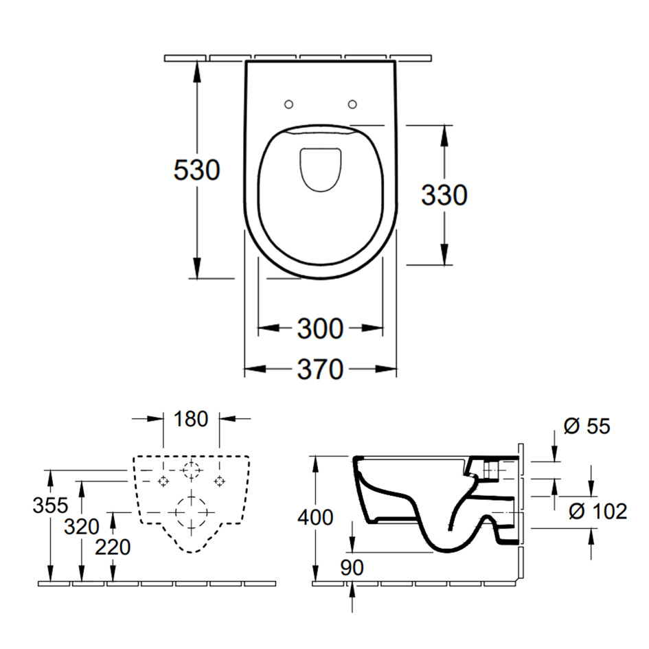 Villeroy & Boch Arceau Cuvette Suspendue sans bride, 530 x 370 x 315mm, Blanc (4658R001)