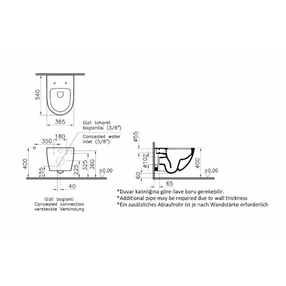 Important : le robinet de commande n’est pas inclus, pas plus que l’abattant WC.