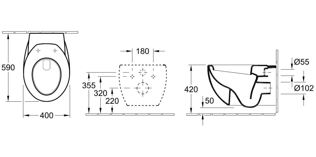 Villeroy & Boch AVEO NEW GENERATION Cuvette à fond creux, 400 mm x 590 mm, Ceramicplus (661210R1)