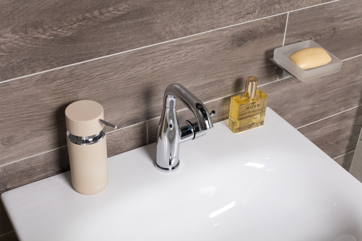 Ce distributeur de savon liquide en finition marron mat apportera à votre salle de bain de la modernité grâce à son design minimaliste et coloré.