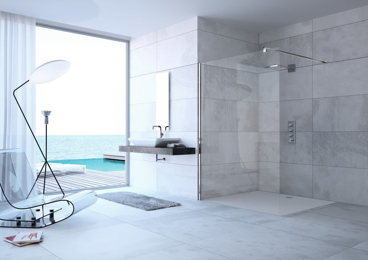 Paroi de douche à l'italienne, en verre transparent sans décor.
