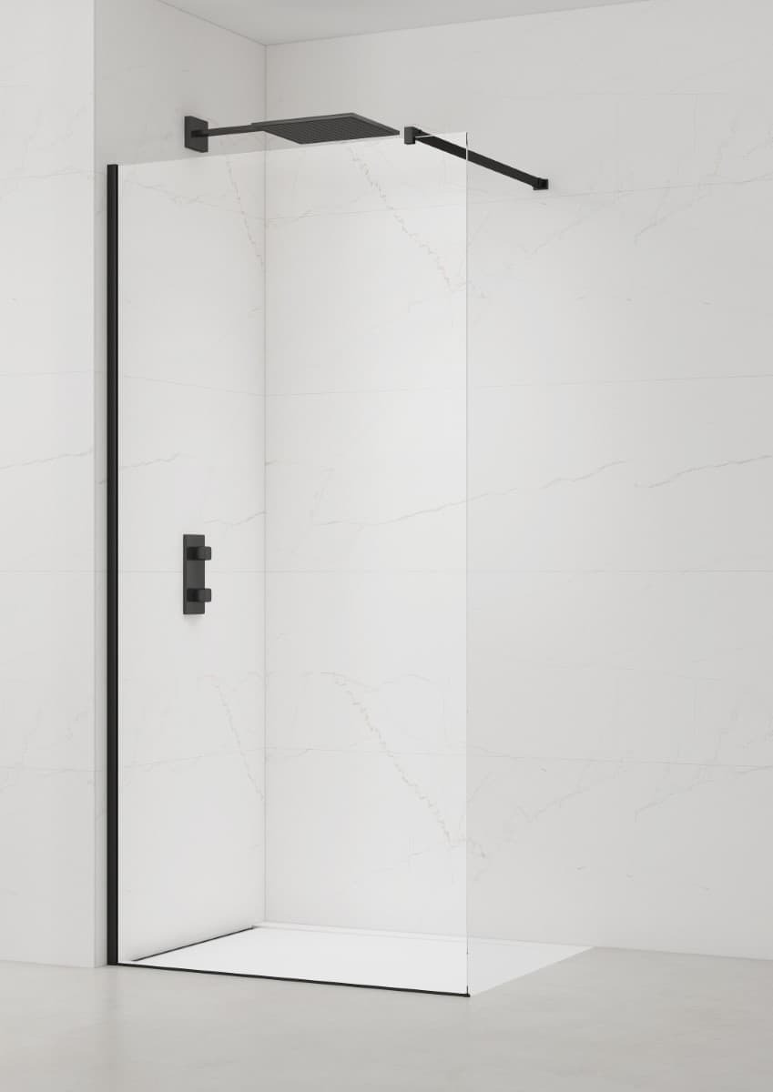 Caractéristiques de la paroi de douche Walk-In anticalcaire avec profilés et bras noir mat (SATBWI120PRC) :
