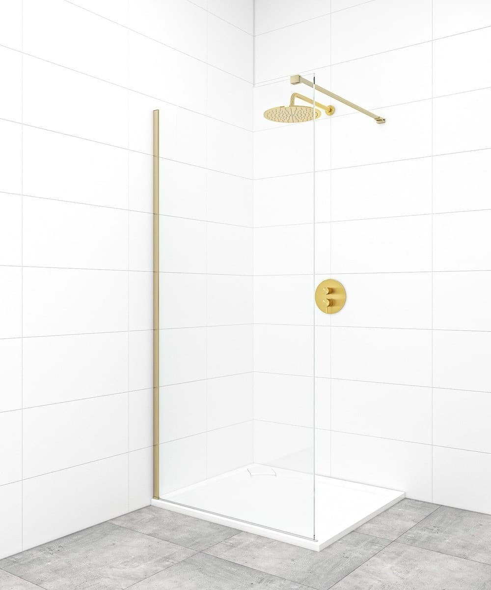 Caractéristiques de la paroi de douche Walk-In anticalcaire avec profilés et bras couleur Laiton (SATBWI70PRMO) :