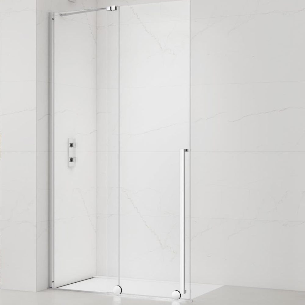 Swiss Aqua Technologies X-MOTION 120x200cm Paroi en verre coulissante Crystal Glass® 8 mm anticalcaire, avec bras et profilés chrome brillant (SATBWIXM1