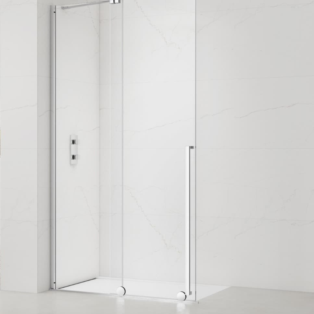 Caractéristiques de la 140x200cm Paroi en verre coulissante Crystal Glass® 8 mm anticalcaire, avec bras et profilés chrome brillant, Swiss Aqua Technologies WALK-IN X-MOTION (SATBWIXM140) :