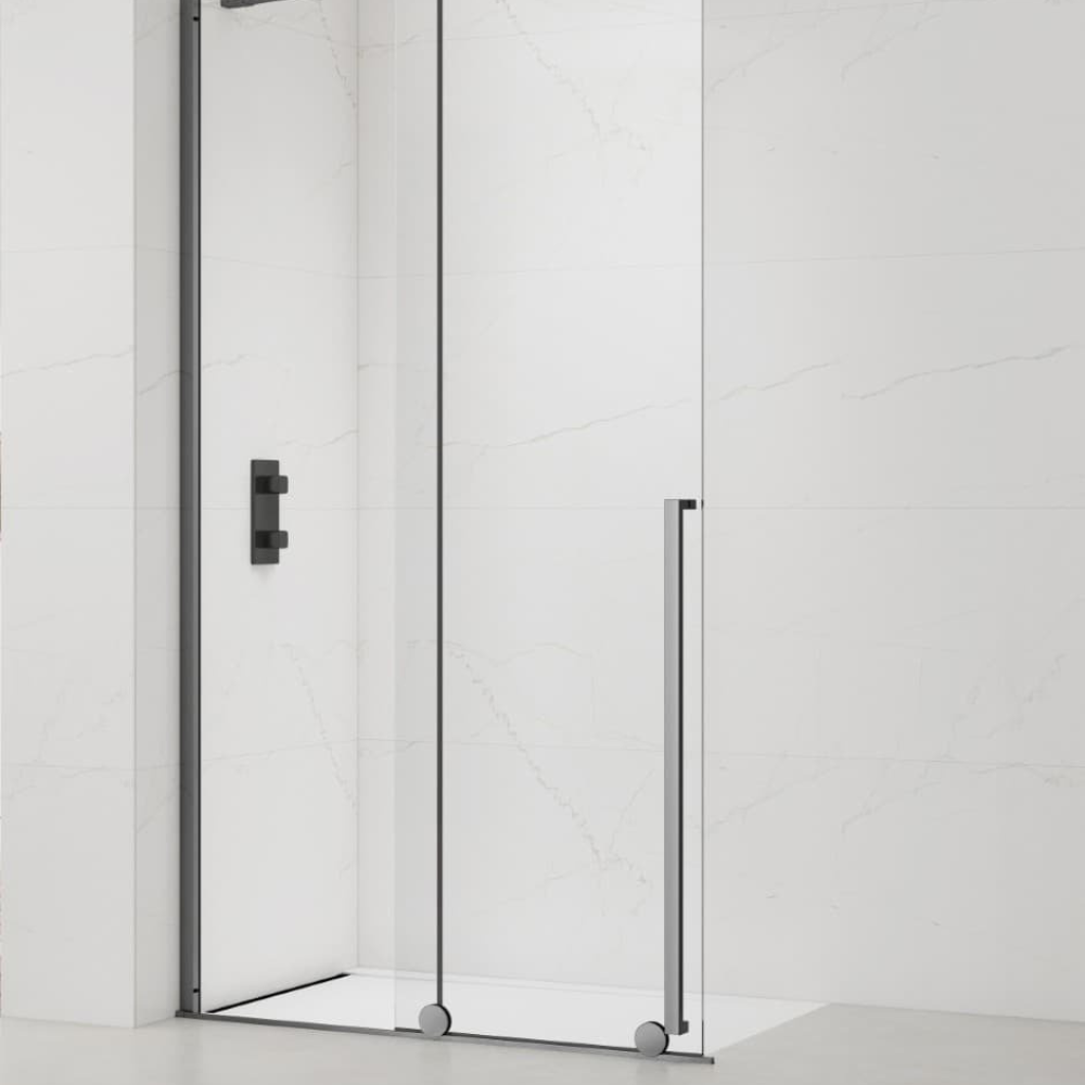 Swiss Aqua Technologies X-MOTION 120x200cm Paroi en verre coulissante Crystal Glass® 8 mm anticalcaire, avec bras et profilés Gun métal (SATBWIXM120GM)