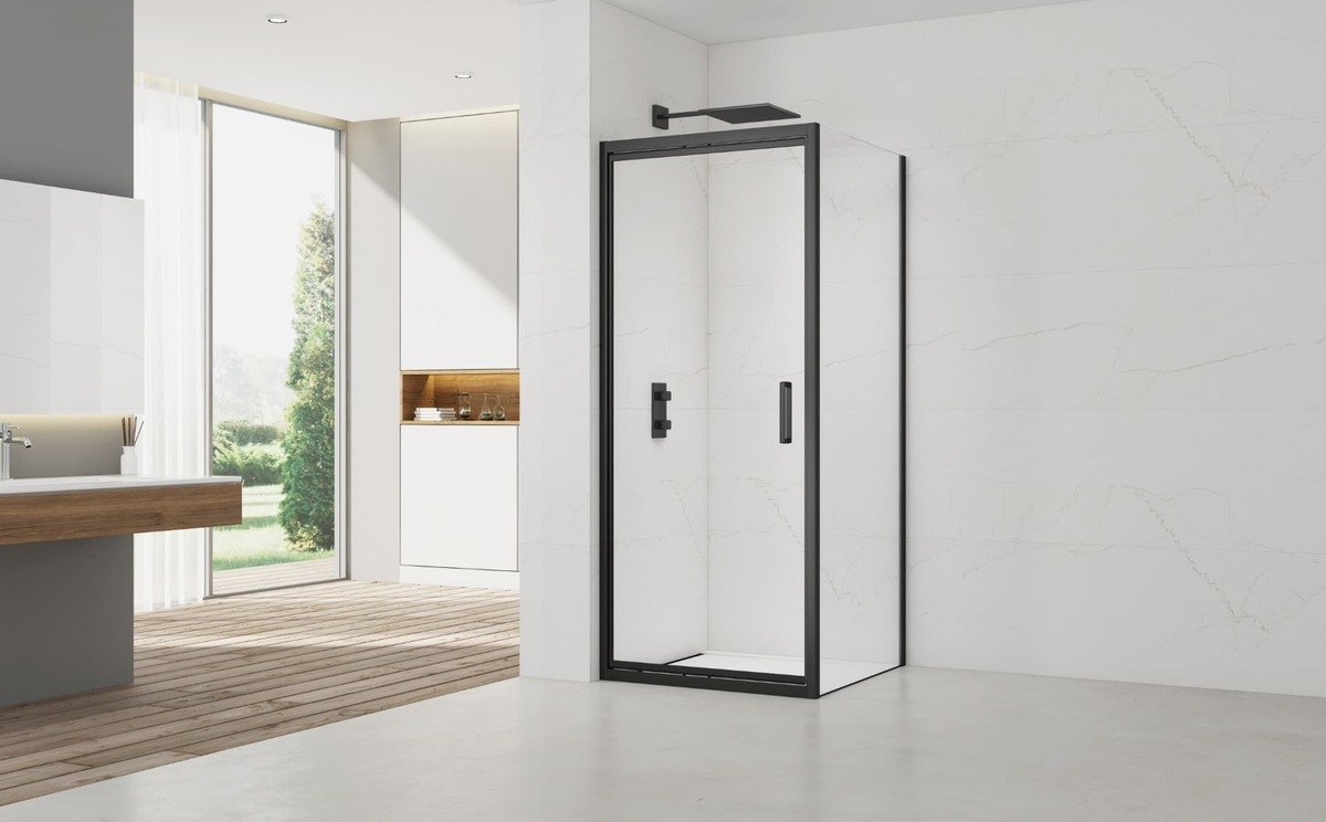 Ajoutez style et praticité à votre salle de bain avec l'ensemble porte à ouverture gain de place Swiss Aqua Technologies TEX-C, équipé d'une paroi anticalcaire de 90x80 cm.