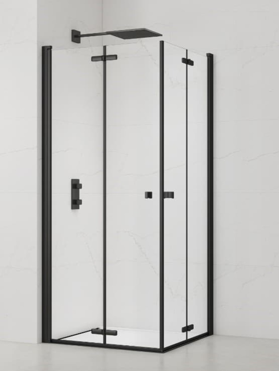Caractéristiques de la porte de douche acces en angle pliantes 90x90cm anticalcaire avec profilés noir mat (SATSK9090C) :