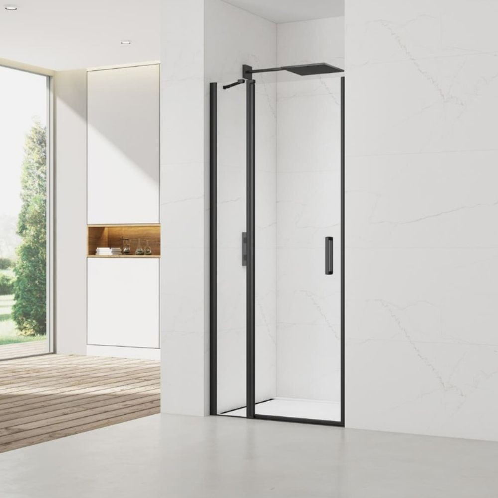 Caractéristiques de la Porte de douche Fusion 90x196cm pivotante anticalcaire avec profilés noir mat (SATFUD90NIKAC) :