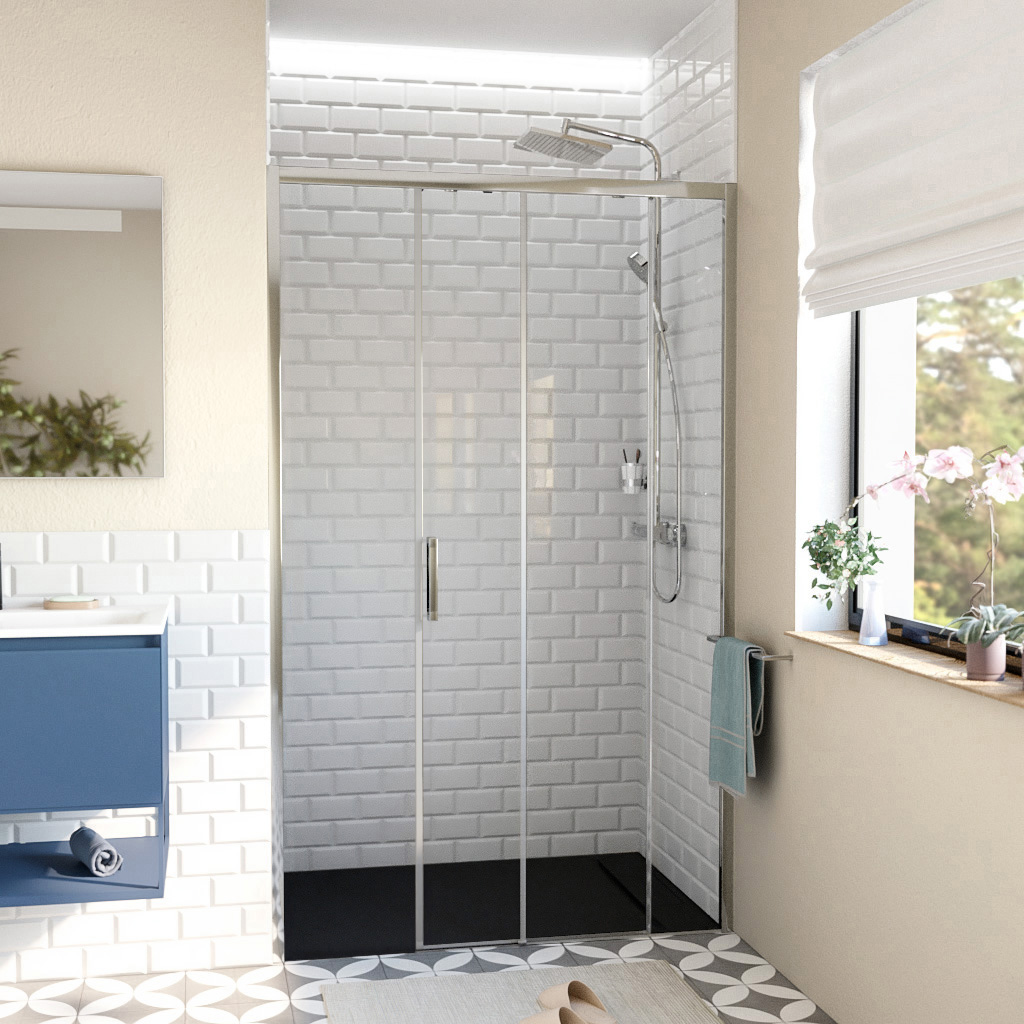 La porte coulissante TEX BB se distingue par l'élégance de son verre Crystal Glass® (ultra transparent) de 6 mm, offrant une pureté et une clarté exceptionnelles. Grâce à son traitement Anticalcaire Easy Clean, l'entretien devient un jeu d'enfant, repoussant les dépôts de calcaire et préservant ainsi l'éclat de la surface. Son mécanisme de coulissement, conçu avec précision, garantit une ouverture fluide et d'une grande praticité, alliant esthétisme et fonctionnalité.